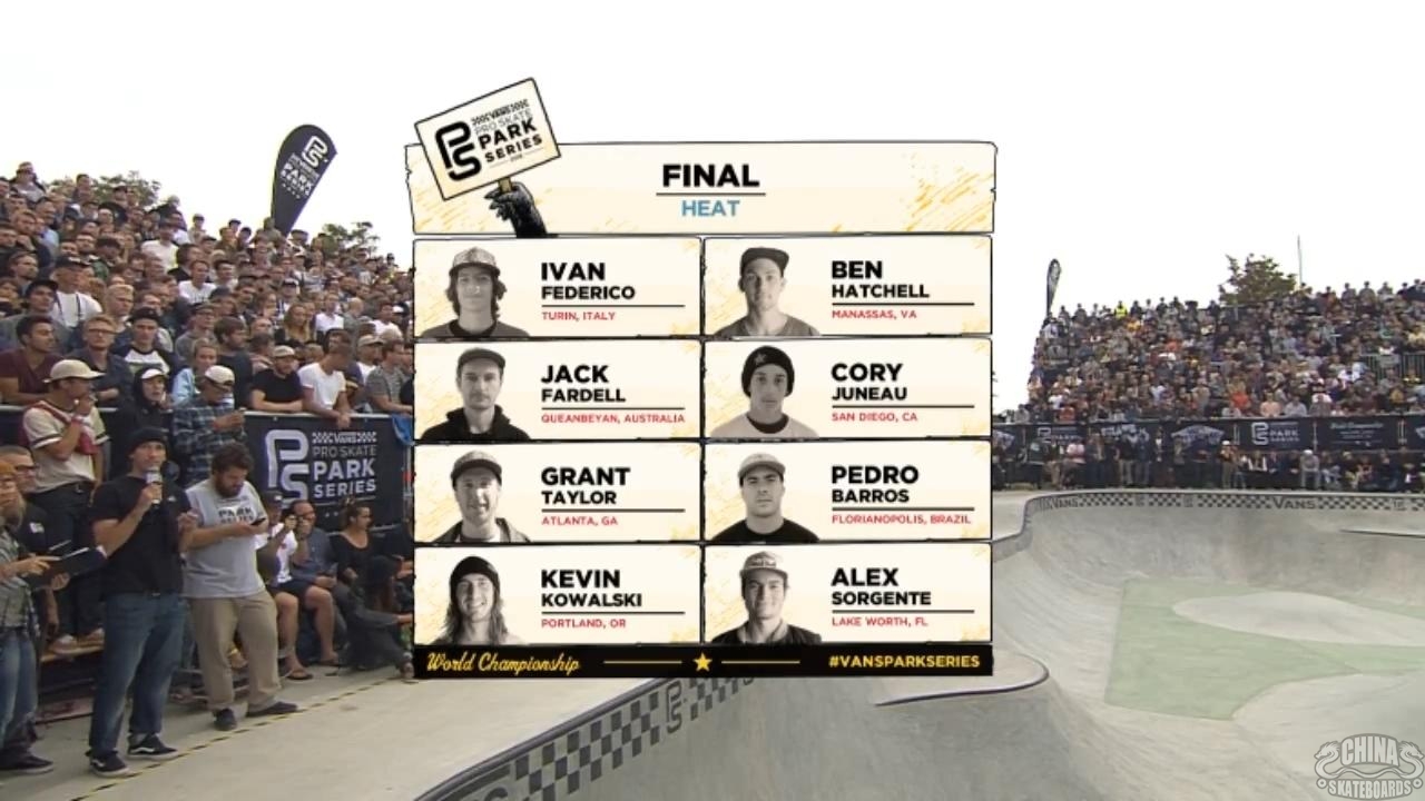 2016 Vans职业公园滑板赛男子组锦标赛60分钟决赛完整视频也发布了!Alex Sorgente,Kevin Kowalski,Grant Taylor等10位入围决赛的滑手决赛的比拼相当激烈。最终Alex Sorgente以绝对的优势位居榜首,获得最后的胜利!