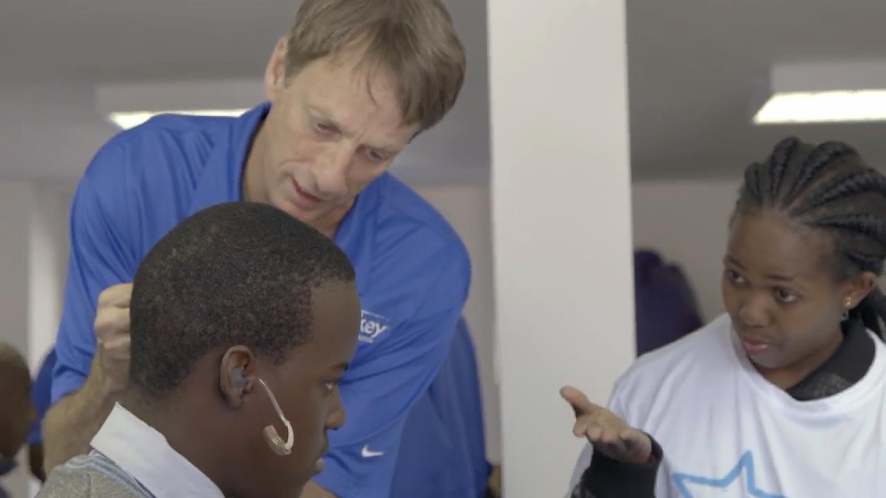 作为滑板届的传奇,Tony Hawk一直没有停止公益的脚步。他跟随Starkey听障基金会,与众好友一起飞往南非约翰内斯堡,为当地的听障儿童带来关怀与滑板表演。虽然孩子们听力上有点障碍,但是看到大神们的表演还是发自内心地大声欢呼。