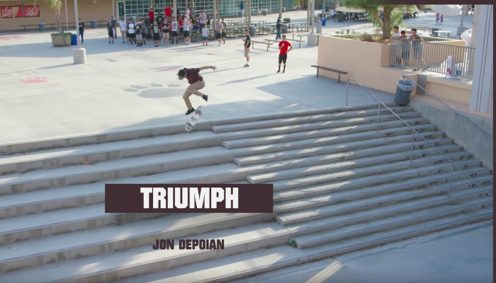 Jon Depoian的孩子这周刚刚出生,作为滑板父亲他将自己最新的一部个人影片以他儿子的名字命名。「Triumph」这个名字有双重含义:一个是即使你有别的工作,周末也可以能量满满地去拍片,第二个就是Jon Depoian儿子身份的象征!