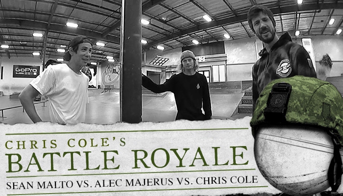 本期作客Berrics板场「Battle Royale」栏目的就是Cole神,小摩托Sean Malto以及Alec Majerus。他们三人要挑战用反脚尖翻飞跃一个用钢铁板凳限制的超远的跨度,究竟这三个实力超强的职业滑手谁能够率先完成任务呢?