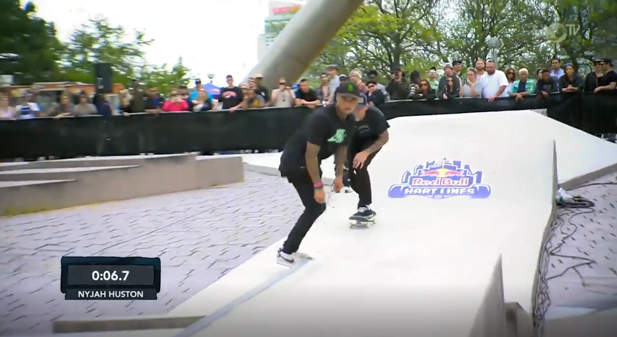 一年一度的红牛Hart Lines比赛也来了,选手需要在规定的一条线上用最短的时间,最流畅的风格,最好的招来完成这条线。这不仅考验技术更考验心理,还必须对在这条线上做什么动作进行完美安排。Nyjah用最短的时间以及零失误完成了这场比赛,拔得头筹,整条线的两次尝试看起来流畅无比,太厉害了!第二名与第三名分别是Alex Majerus,Kevin Hoefler,他们的表现也十分精彩。