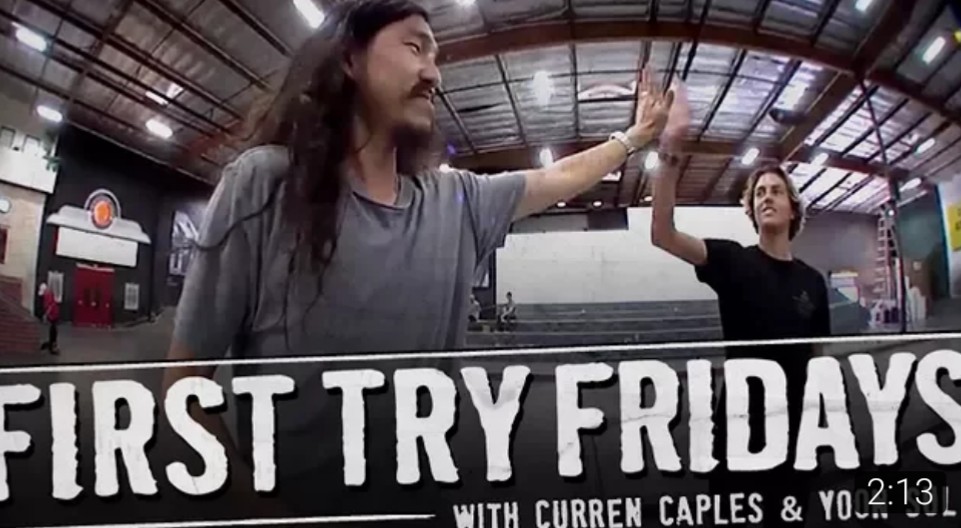 本期周五作客Berrics的就是最近人气超高的Curren Caples,他被邀请参加First Try节目,挑战一次成Half Cab Blunt 270 Out,他刚到板场连热身都没有上来就成了这个动作,非常轻松,没有半点迟疑,这实力也太强了!