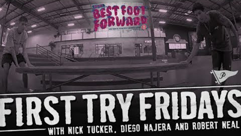 Primitive队伍正在Berrics板场为Zumeiz Best Foot Forward做准备,趁这个机会,First Try Friday邀请他们做了一次节目,Nick Tucker做主持人,Robert Neal和Diego Najera来挑战,不得不说Diego那个随意的Switch Heel Noseslide实在做的太帅了,当然最后他们也没放过Nick,他也来了一次挑战。