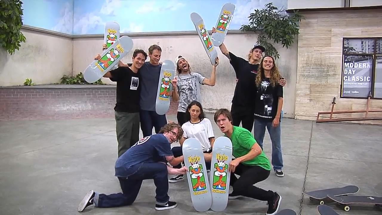 上周,Birdhouse正式将Shawn Hale升为旗下的职业滑手。为了庆祝这个喜讯,Tony Hawk带着女神Lizze,跳楼哥Jaws,眼镜白鲨Ben等所有成员一起来到Berrics板场,每个人都拿着Shawn Hale的板面做了一套动作,这个队伍真的太有爱了!
