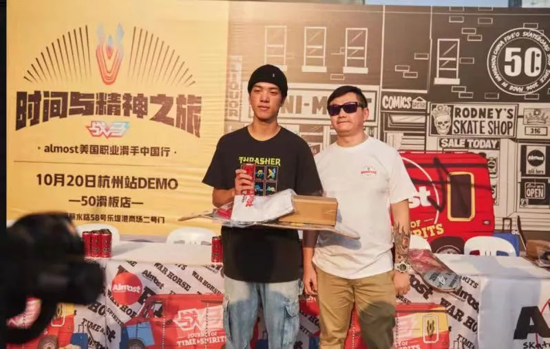 在Almost职业滑手空降杭州活动现场之前,杭州50滑板店专门为这次活动举办了一场本地的预热赛。预热赛奖品也是非常丰富,那么先让我们看看哪些滑手在预热塞中获胜了吧!