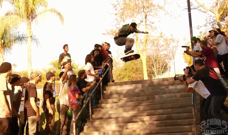 Tony Tave则无惧人群的压力,在众多滑手的围观下他试图用Nollie Inward Heel下一个12级的台阶。即使摔跤得四脚朝天,他也不觉得丢脸,拿起滑板继续挑战。经过12次的尝试,最终他成功征服了这个台阶,赢得了众人的喝彩。滑板就是这样,没有人在意你失败了几次,哪怕只成功一次,你也会得到大家的掌声!