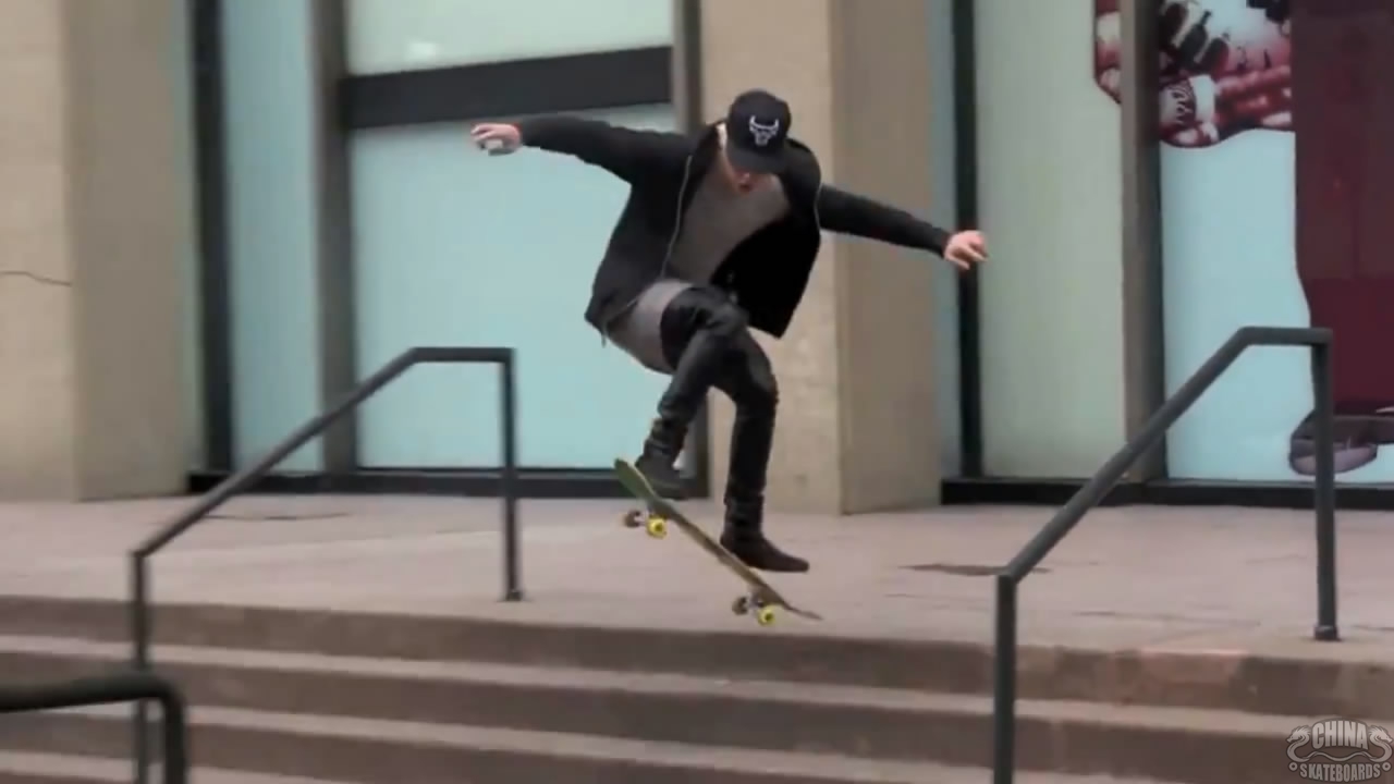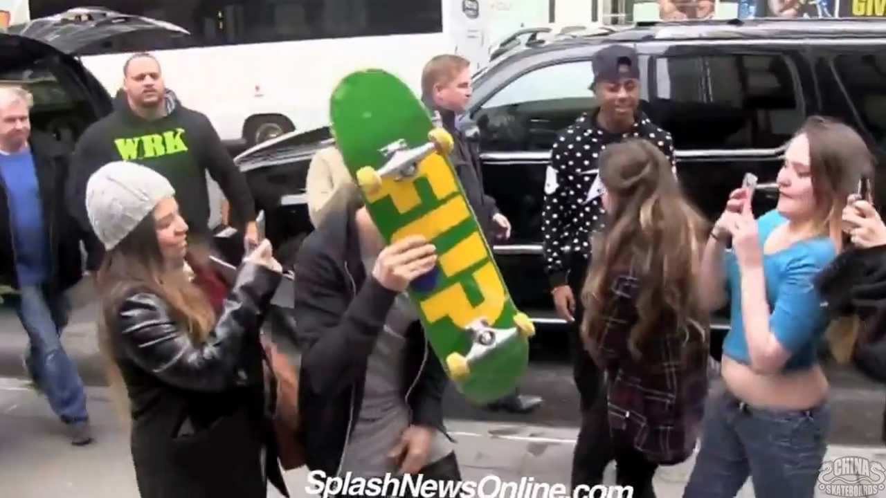 滑板励志篇-Justin Bieber挑战纽约街头台阶,光是场面和阵势已足够说明一切,保镖加无数媒体,让Justin Bieber一跃成为2014年全球关注度最高的滑板新人。