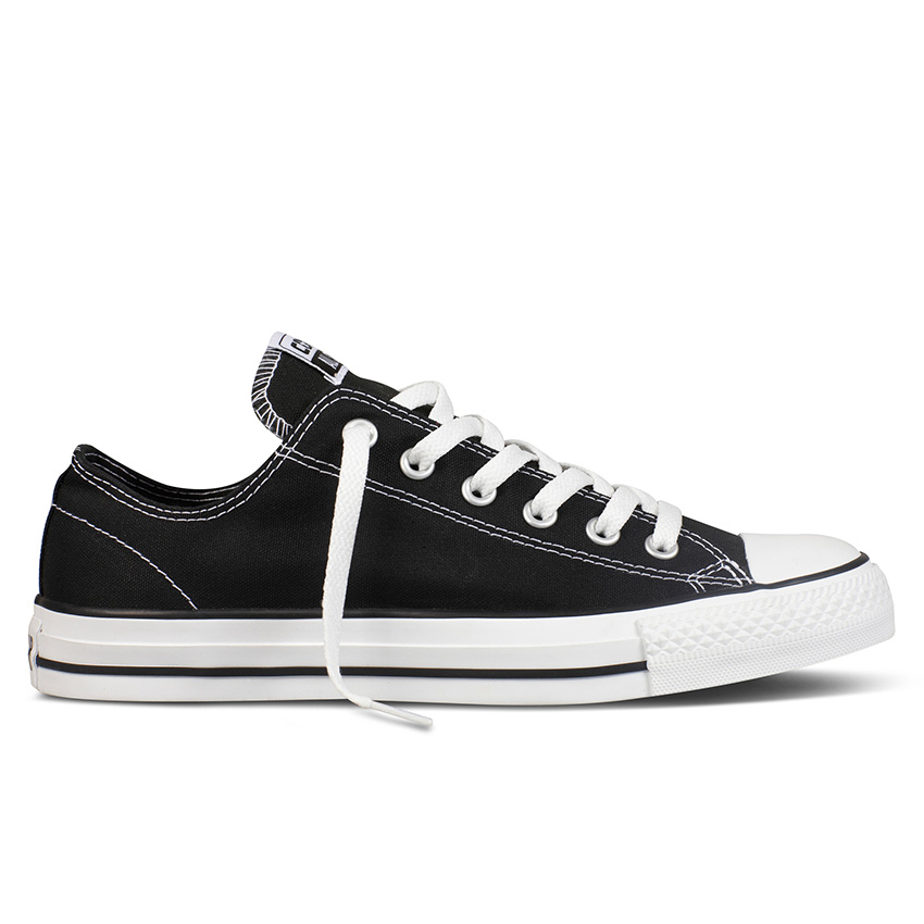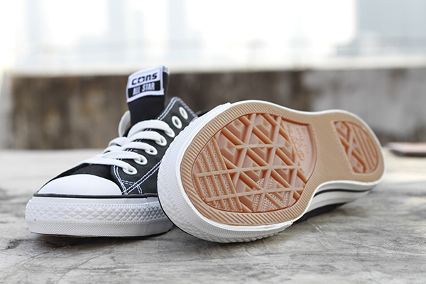 帆布鞋身与白色车线再度为百看不厌的黑白搭配赋予了独特的气质。而经过加工的特殊帆布面料增加的耐磨特性和ALL STAR经典牵引橡胶鞋底提供的良好抓板性能也让Chuck Taylor摇身变为滑板利器。