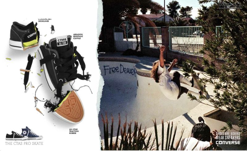 广告说的好,你家那些鞋都太无聊了,换双Convers的Sammy Baca CTA PRO SKATE吧,带上滑板去游泳池放水!